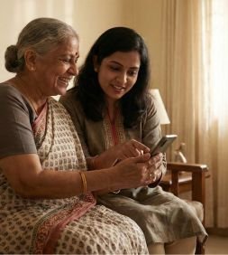 It’s built for compassion, not competition. Focused on seniors — with large buttons, easy language, and complete privacy. Every feature is created in consultation with doctors, caregivers, and real families.